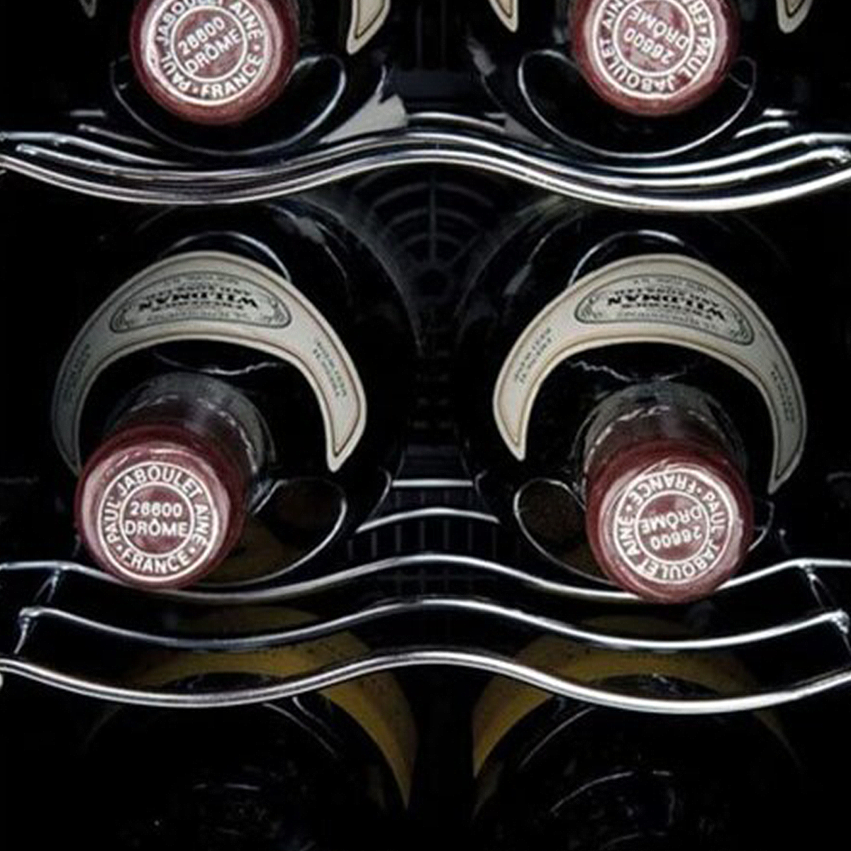 - 3 chrome racks with stainless steel handle for easier access to the wine.